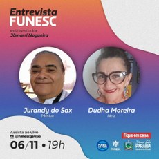 A atriz Dudha Moreira e o músico Jurandy do Sax são os convidados desta semana do projeto ‘Entrevista Funesc’, que acontece nesta sexta-feira (6), às 19h, sob o comando do jornalista Jãmarrí Nogueira. O bate papo, comemorativo ao Dia Nacional do Riso e Dia Internacional do Saxofonista, será ao vivo e veiculado em formato de live no Instagram da Funesc (@funescgovpb).