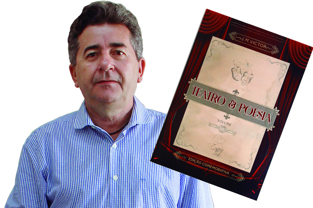 O autor José Mota Victor e a capa da sua obra comemorativa aos 40 anos da estreia de sua primeira peça