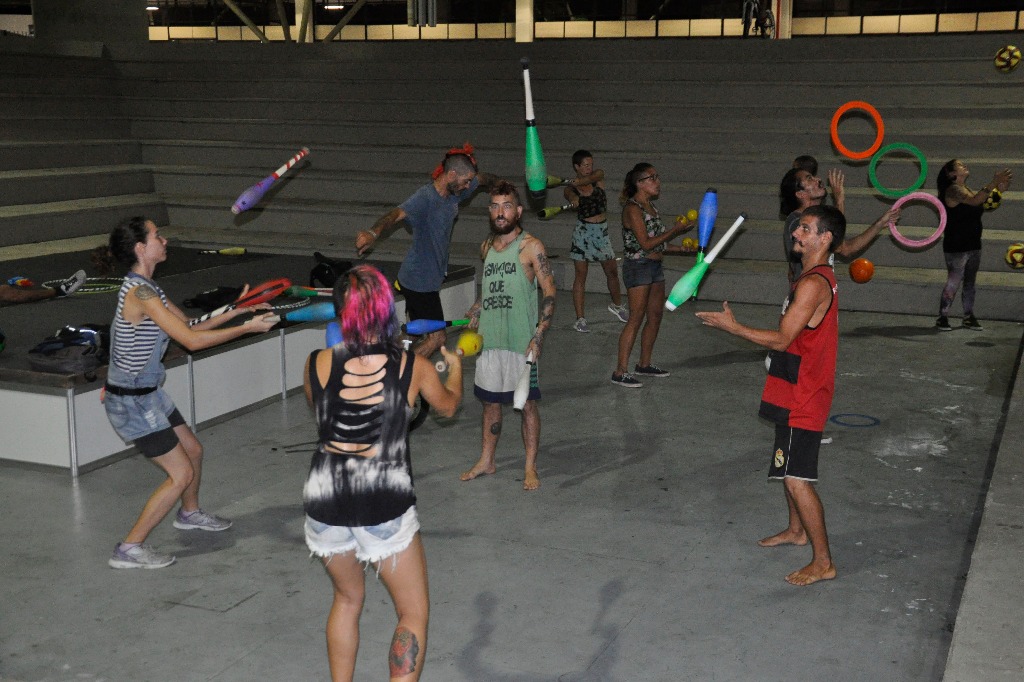Os artistas que desenvolvem números circenses nas ruas, se encontram