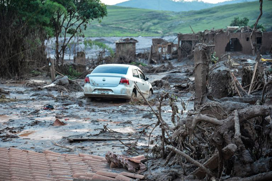 Milhões de metros cúbicos de lama foram despejados após o rompimento da barragem de Fundão, em Mariana (MG)