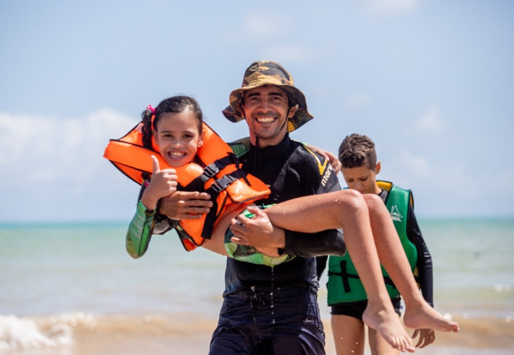 Há 7 anos, o projeto Acesso Cidadão, que reúne voluntários, proporciona momentos de lazer e esporte a pessoas com deficiência e crianças com Síndrome de Down, que frequentam a Praia do Cabo Branco.