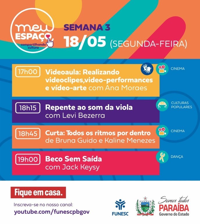 Você está aqui: Página Inicial > Notícias > Paraíba > Funesc inicia terceira semana da programação ‘Meu Espaço - Compartilhando Cultura'