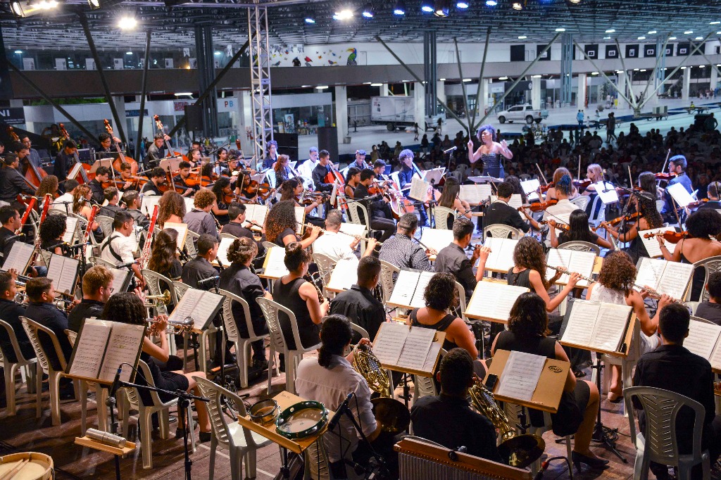 Concerto foi apresentado na Praça do Povo do Espaço Cultural, reunindo cerca de 170 alunos oriundos dos 15 polos do Prima
