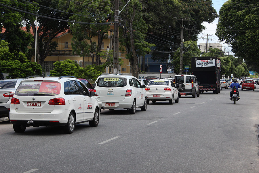Profissionais seguiram em carreata da Orla ao Centro cobrando providências sobre a circulação de taxistas de outras cidades