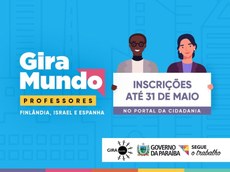 Gira Mundo Professor - O Programa Gira Mundo Professores é uma ação do Governo do Estado da Paraíba, por meio da Secretaria de Estado da Educação e da Ciência e Tecnologia (SEECT), desenvolvido com o objetivo de ampliar a qualidade da Educação Básica no Estado mediante a formação de professores e gestores da Rede Estadual de Ensino em instituições de ensino superior internacionais com excelência reconhecida em diferentes áreas do conhecimento.