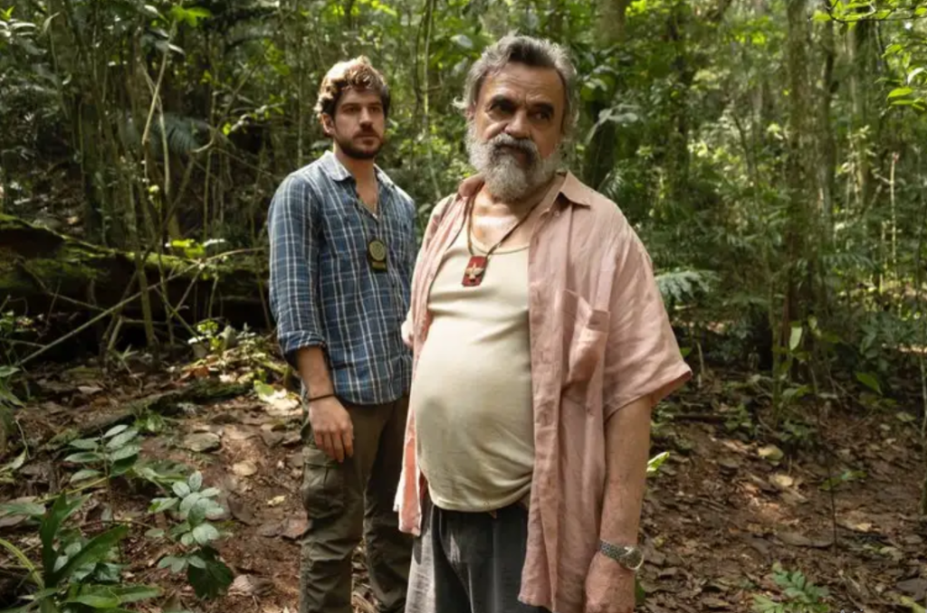 Marco Pigossi (E) vive um policial e José Dumond (D), o líder de um povoado em ‘Cidade Invisível’