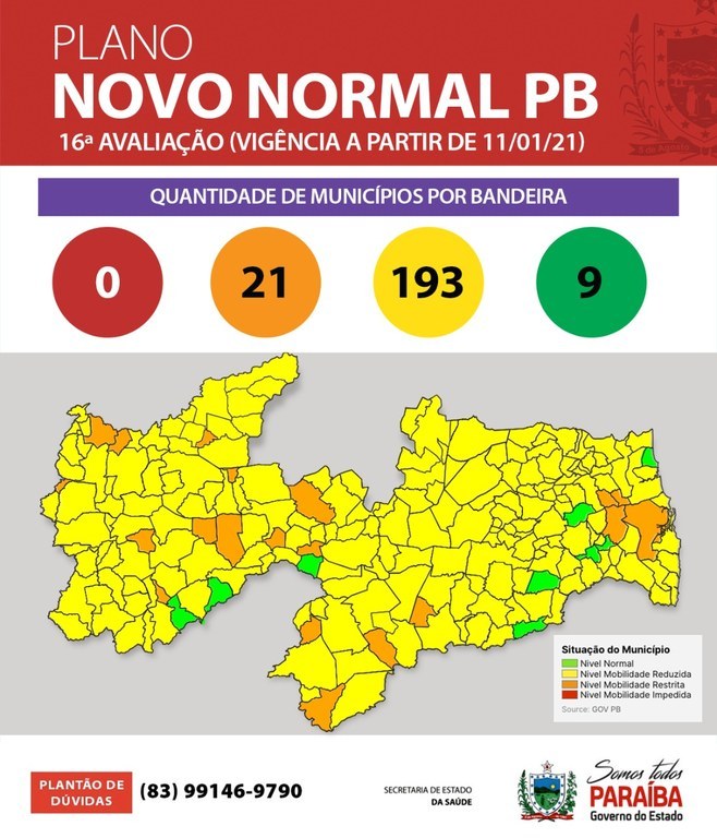 A Secretaria de Estado da Saúde publicou, na tarde deste sábado (9), a 16ª avaliação do Plano Novo Normal Paraíba, com a análise situacional e evolutiva da Pandemia da Covid-19 no Estado da Paraíba e recomendações necessárias para contenção da recrudescência da pandemia em todo Estado.