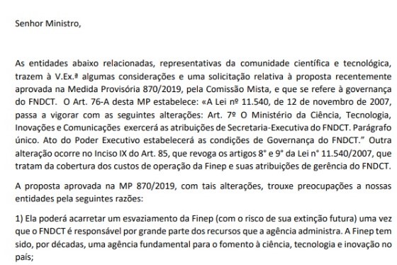 Medida que dispõe sobre a mudança da Secretaria Executiva do FNDCT da FINEP para o MCTIC mobiliza comunidade científica
