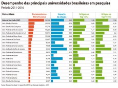 A expansão notável, fruto de algumas políticas muito bem estruturadas que estão a merecer outros comentários no Ciência na rua, foi baseada na capacidade de produzir ciência das universidades públicas brasileiras, com a Universidade de São Paulo (USP) e a Universidade Estadual de Campinas (Unicamp), ou seja, duas grandes universidades estaduais paulistas, mais algumas grandes universidades federais, como a do Rio de Janeiro (UFRJ), a de Minas Gerais (UFMG) e a do Rio Grande do Sul (UFRGS), na liderança desse processo. Mais de 95% dessa produção científica do Brasil nas bases internacionais deve-se, assim, à capacidade de pesquisa de suas universidades públicas.