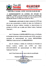 PORTARIA N° 019/2020 - LOTEP - 29 DE JULHO DE 2020