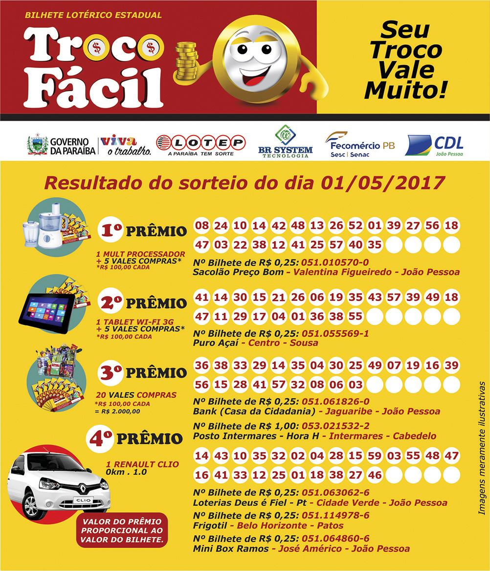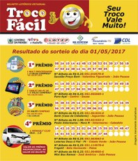 Notícias RESULTADO DO SORTEIO TROCO FÁCIL 01/05/2017 RESULTADO DO SORTEIO TROCO FÁCIL 01/05/2017 Tweet Tweet Exibir carrossel de imagens