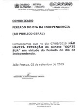 COMUNICADO OFICIAL (FERIADO DIA DA INDEPENDÊNCIA)