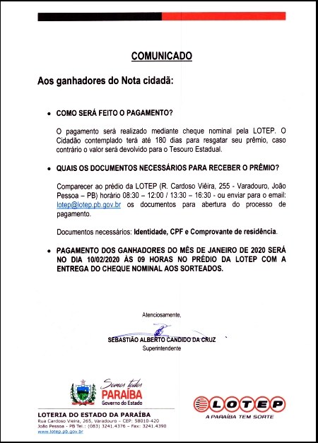 COMUNICADO OFICIAL (NOTA CIDADÃ)