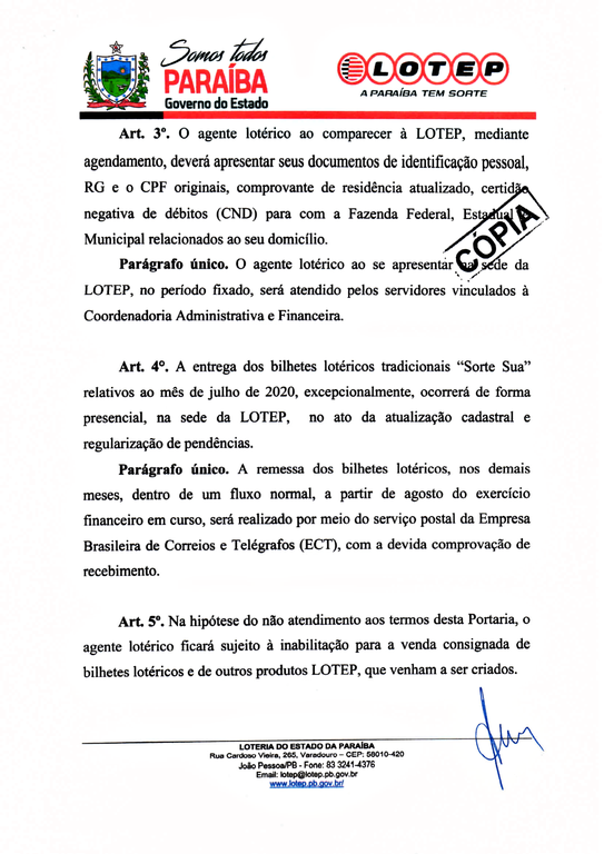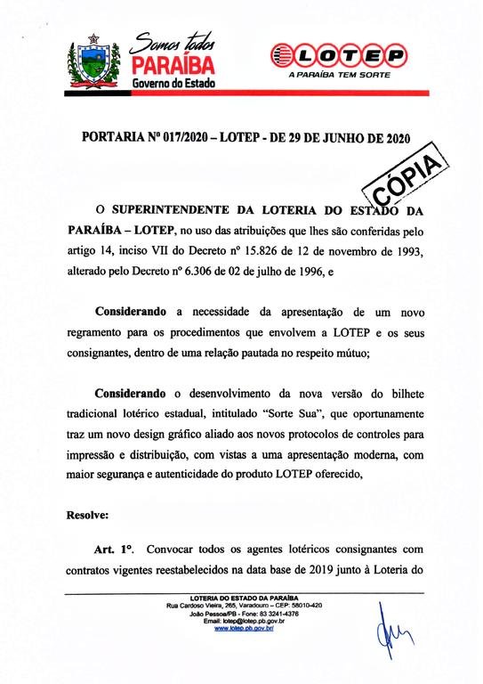 Você está aqui: Página Inicial > Adm. Indireta > LOTEP > Menu Principal > Notícias > COMUNICADO OFICIAL, PORTARIA N° 017/2020-LOTEP (RECADASTRAMENTO)