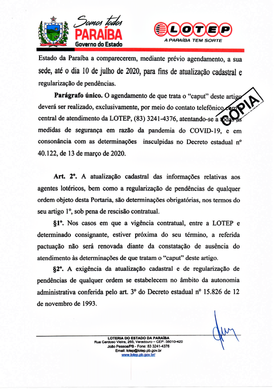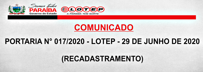 COMUNICADO OFICIAL, PORTARIA N° 017/2020-LOTEP (RECADASTRAMENTO)
