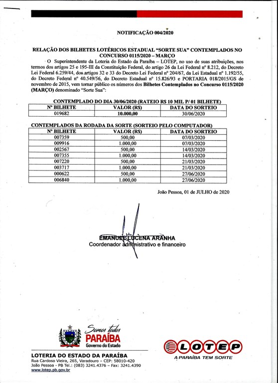 CONTEMPLADOS NO CONCURSO 0115 - MARÇO - 2020