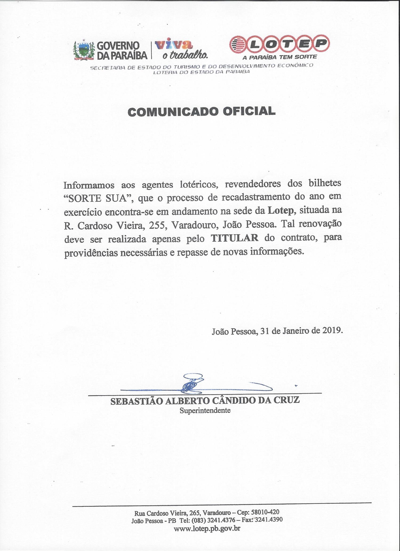 COMUNICADO OFICIAL (RECADASTRAMENTO)