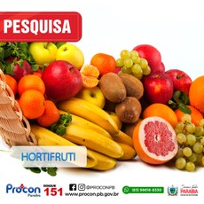 A Autarquia de Proteção e Defesa do Consumidor, PROCON-PB, através do Setor de Pesquisa e Estatística, realizou no dia 10 de maio uma pesquisa de preços referentes aos preços de hortifrutigranjeiros, em 13 estabelecimentos na capital.