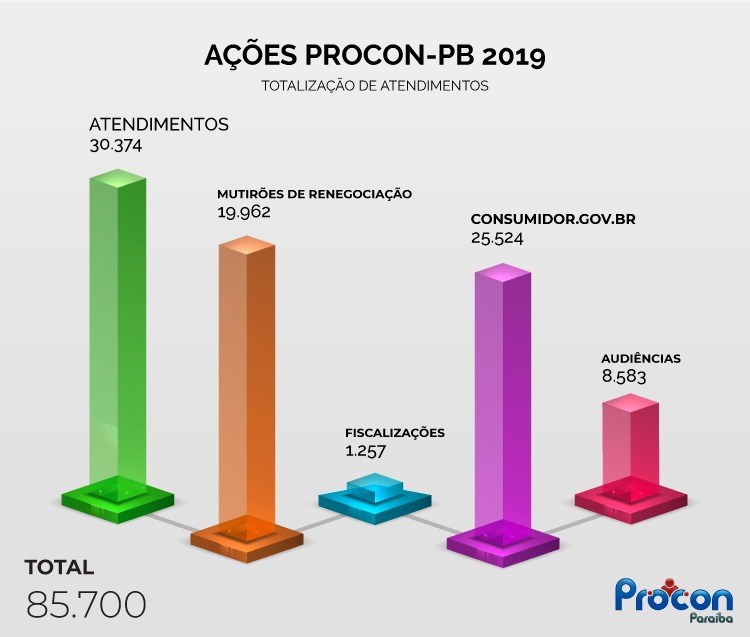 PROCON-PB DIVULGA BALANÇO DAS AÇÕES DE 2019 E ATINGE RECORDE COM MAIS DE 85 MIL ATENDIMENTOS
