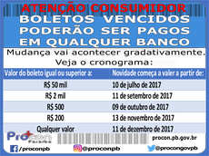 Você está aqui: Página Inicial > Adm. Indireta > PROCON > Notícias > Procon-PB informa aos consumidores da nova medida de pagamentos de boletos que começou a funcionar em todo Brasil