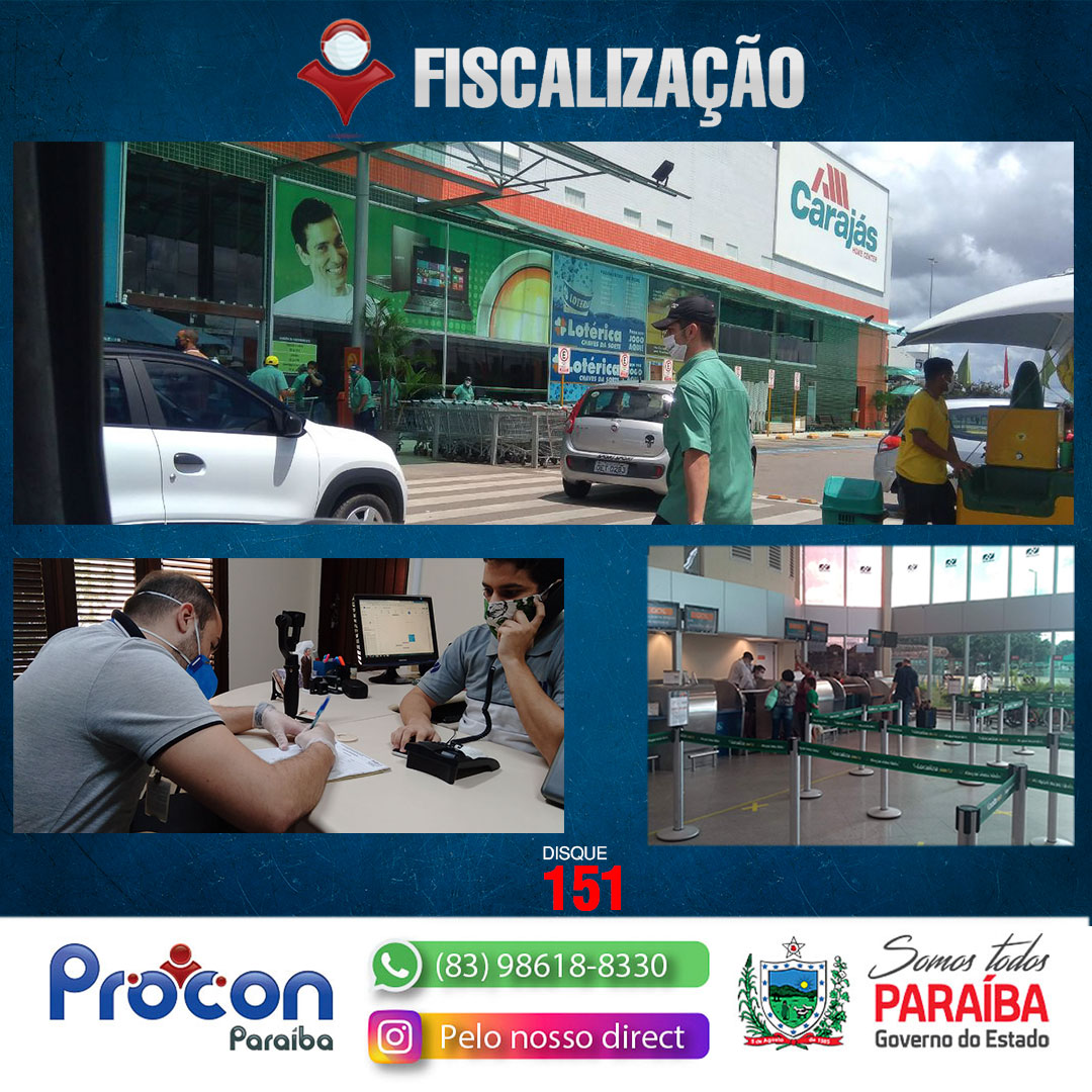 PROCON-PB NOTIFICA CARAJÁS A ENCERRAR SUAS ATIVIDADES INTERNAS E FISCALIZA ATENDIMENTO NO AEROPORTO E SUPERMERCADOS DA CAPITAL PARAIBANA NO COMBATE AO CORONAVÍRUS