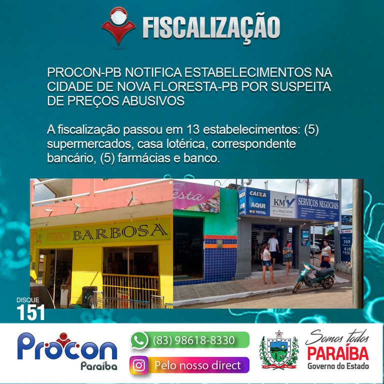PROCON-PB NOTIFICA ESTABELECIMENTOS NA CIDADE DE NOVA FLORESTA-PB POR SUSPEITA DE PREÇOS ABUSIVOS