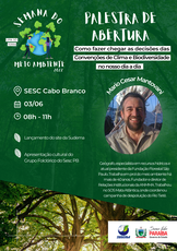 Acontecerá, no próximo dia 03 de junho, no Sesc Cabo Branco, em João Pessoa, a abertura da Semana do Meio Ambiente 2022 da Sudema. O ponto alto da solenidade, que terá início às 8h, será a palestra do geógrafo e ambientalista Mário César Mantovani, com o tema “Como fazer as decisões das convenções de clima e biodiversidade chegar no nosso dia a dia”.