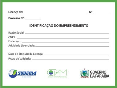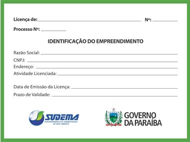 Modelo de Placa Para Identificação de Empreendimentos Com Licenças emitidas pela SUDEMA.